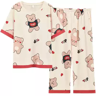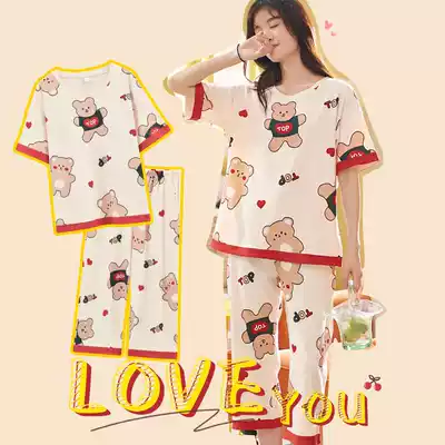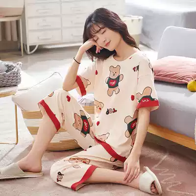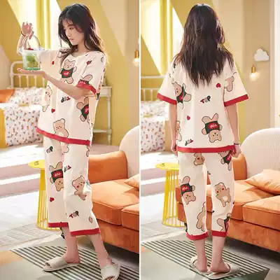 Pajamas women's summer cotton 2021 new three-point pants short-sleeved sweet suit thin section can be worn outside home clothes