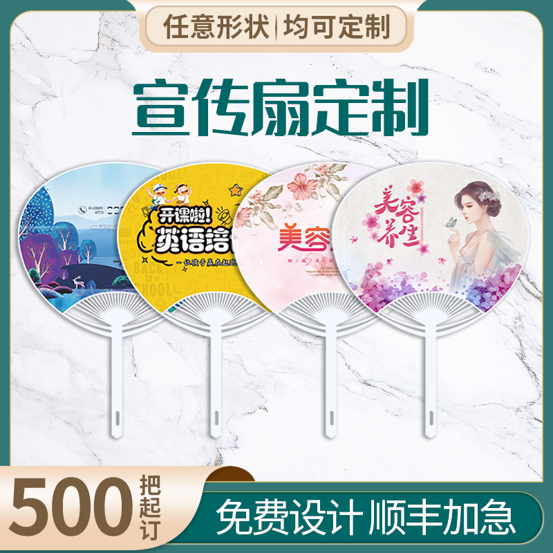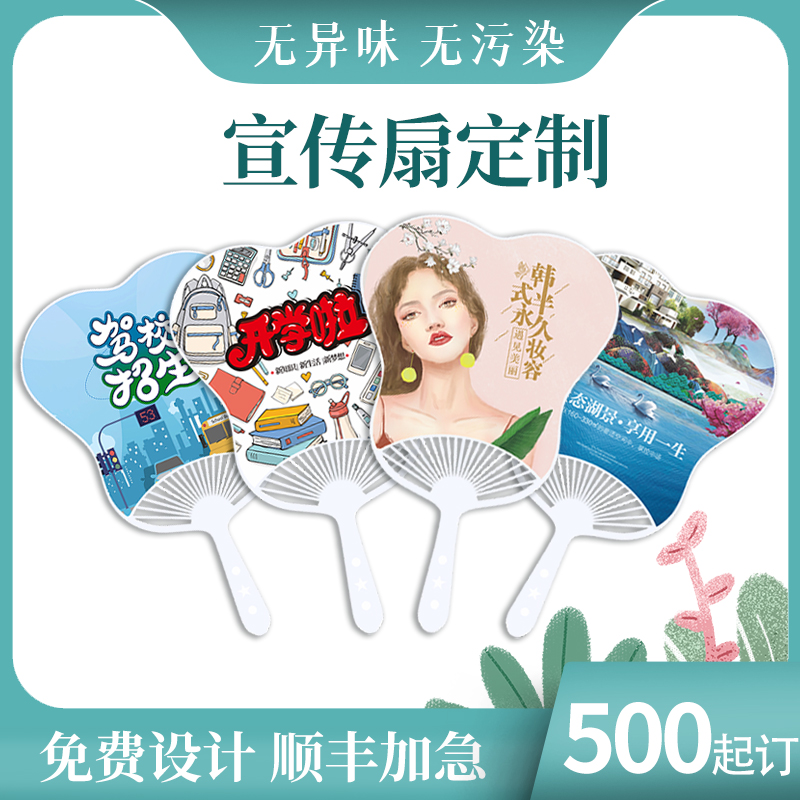 Advertising fan custom pp plastic promotional gifts small group fan cartoon fan custom middle handle 500 printed logo