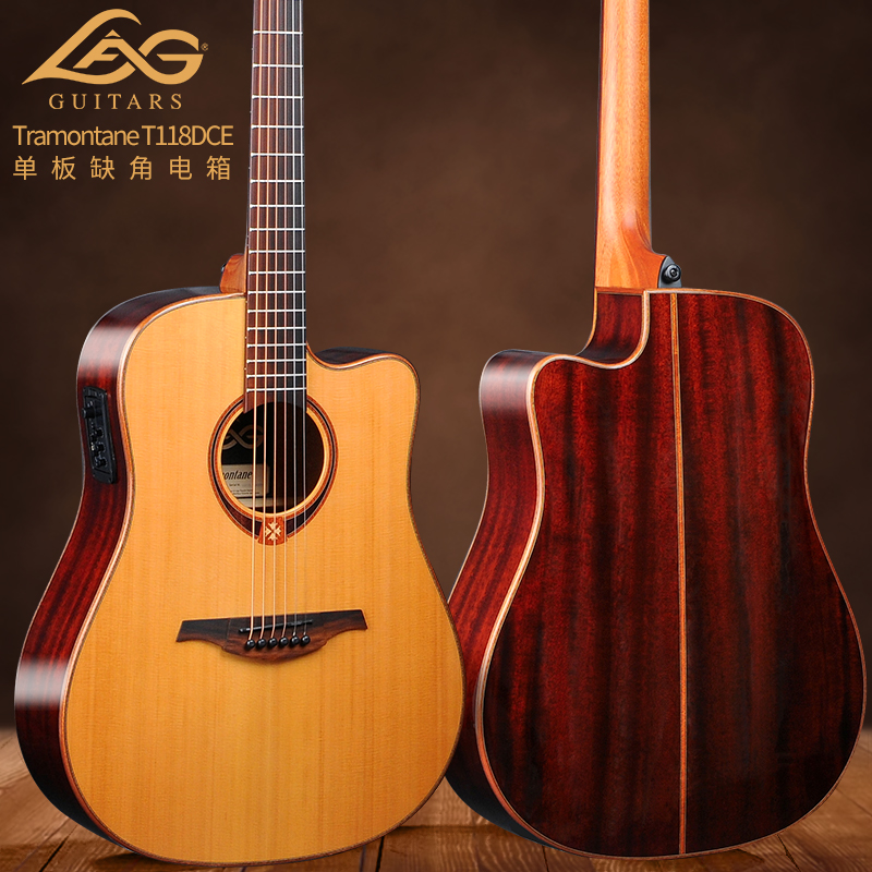 French LAG single board folk guitar face single T118DCE electric box guitar playing singing finger playing acoustic guitar light 41 English