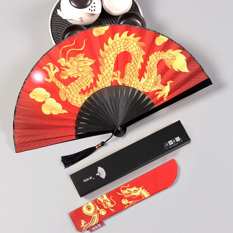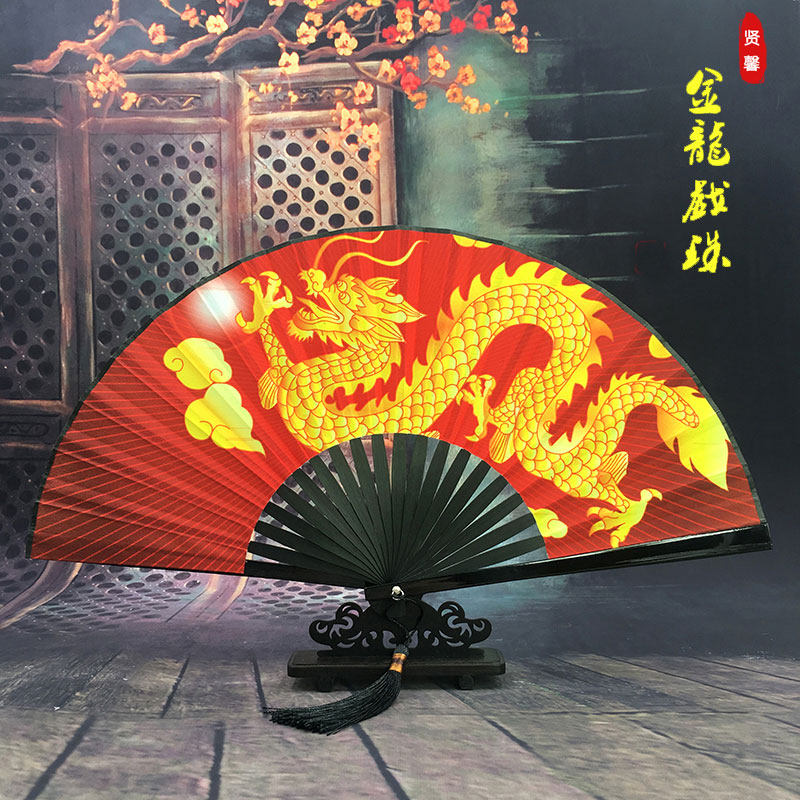 Bar bungdi fan hegemony Chinese wind golden dragon folding fan summer ancient fan with carry-on folding han clothing fan
