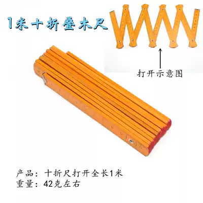Ten folding ruler wooden folding ruler length 1 meter manual folding ruler marking Woodworking measuring tool nostalgic teaching equipment