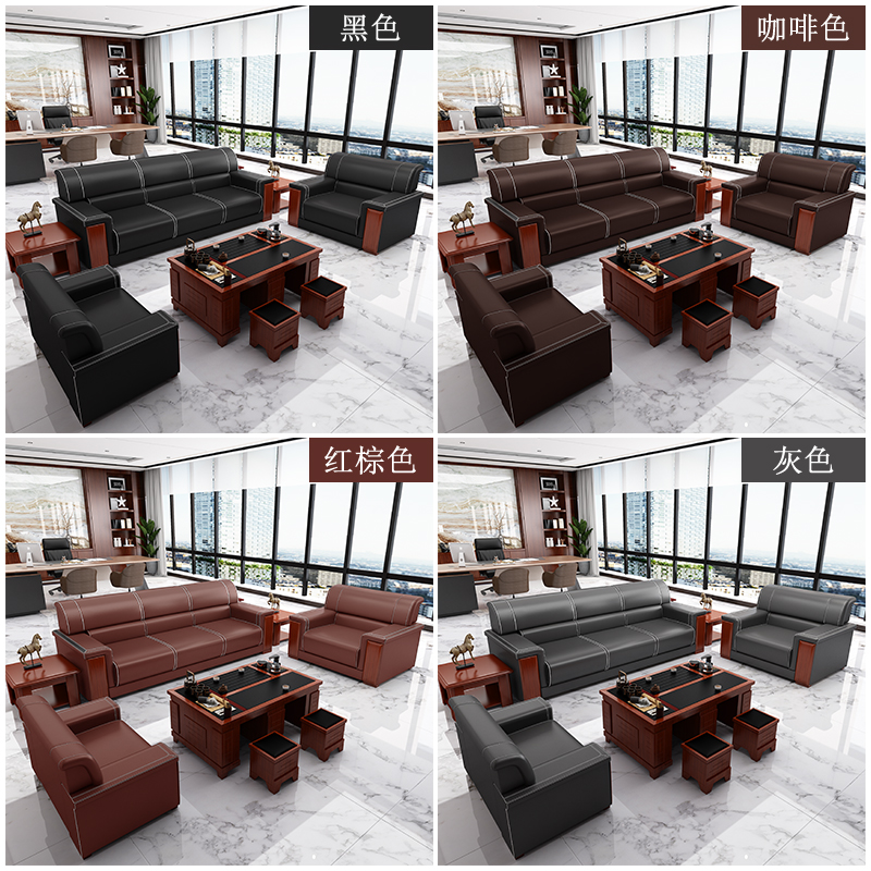 Reception business office sofa coffee table combination set solid wood modern reception negotiation office rest area Chinese style
