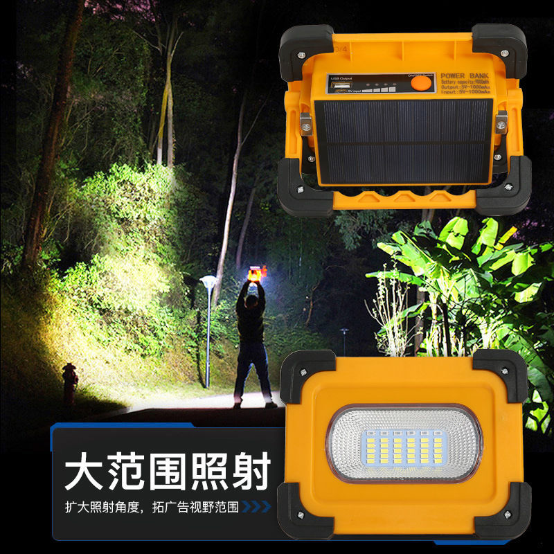 LED emergency construction site solar portable mobile charging spotlight camping long battery life super bright outdoor night market stalls