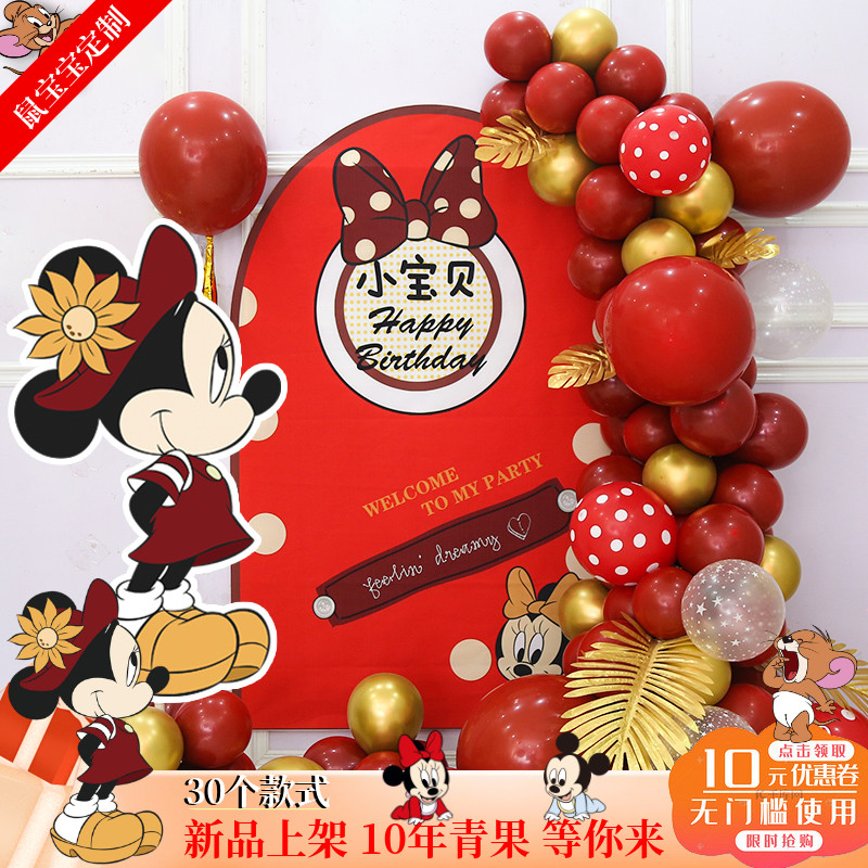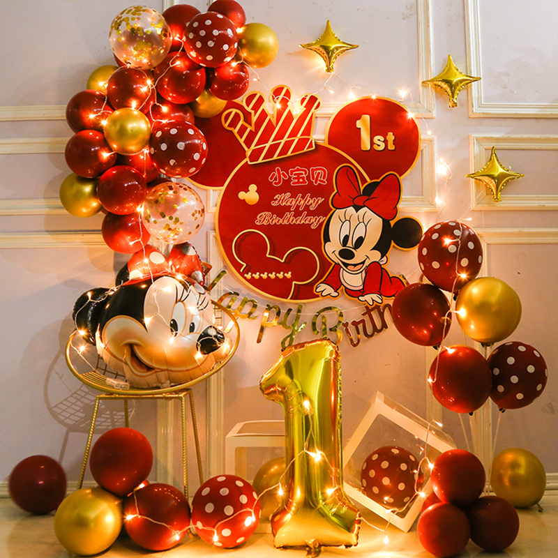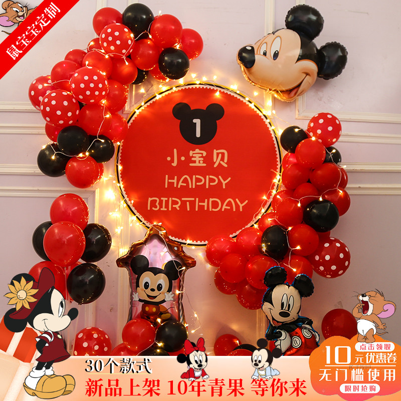 Rat baby 2-2 weeks birthday arrangement Mickey Balloon Boy Mickey Mouse Girl Scene Decorate Background Wall