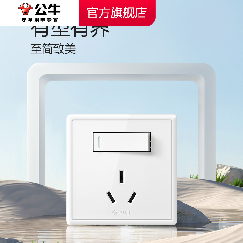 Bull socket flagship switch socket 16A high power water heater air conditioner with switch three - hole socket G36 white