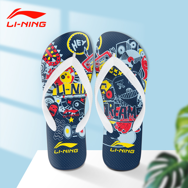 Li Ning Beach Herringbone Slippers for men and women Summer outwear Wear Lovers Tide Drag Clip Feet Anti Slip Fashion 2021 New