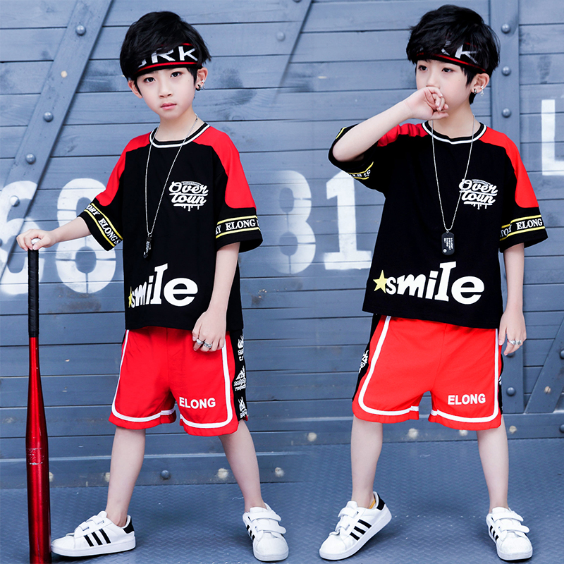Children's clothing boy summer short-sleeved suit handsome fat boy loose foreign style middle child hip-hop hip-hop street dance tide brand 3-12 years old