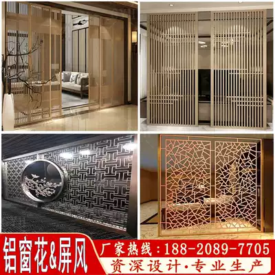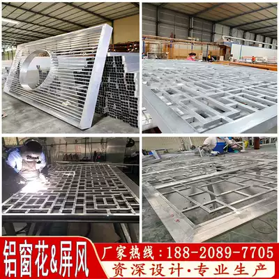 Aluminum window flower factory custom antique wood grain paint grid window aluminum alloy retro Chinese screen partition anti-theft net