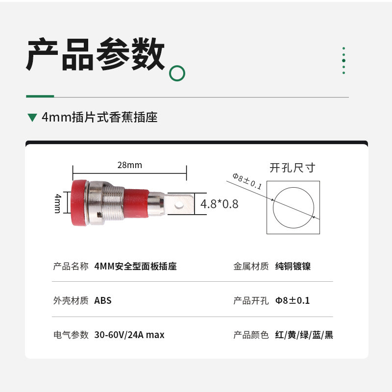 Instrumentation all copper 4mm banana socket low protruding panel insulated socket jack terminal panel installation