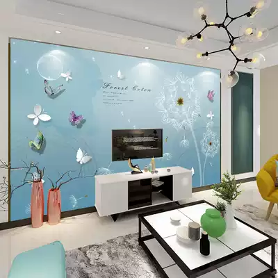 Simple blue dandelion background wall painting living room film and television wall cloth modern style TV background wall paper