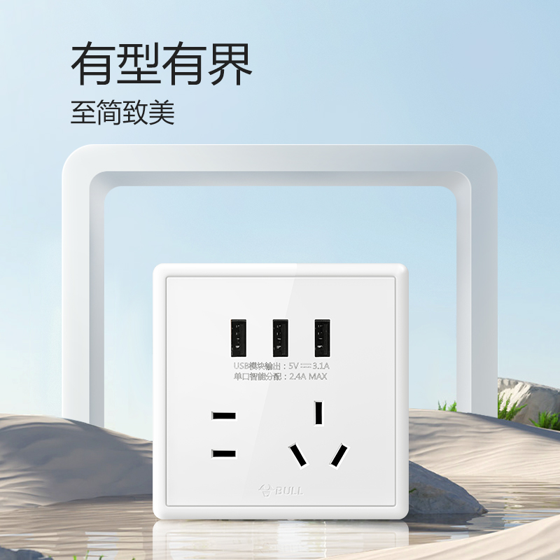 Bull socket flagship wall switch 5-hole socket concealed with 3USB five-hole socket home panel G36 white