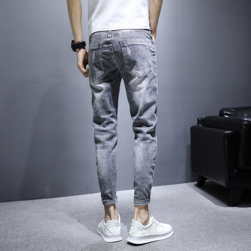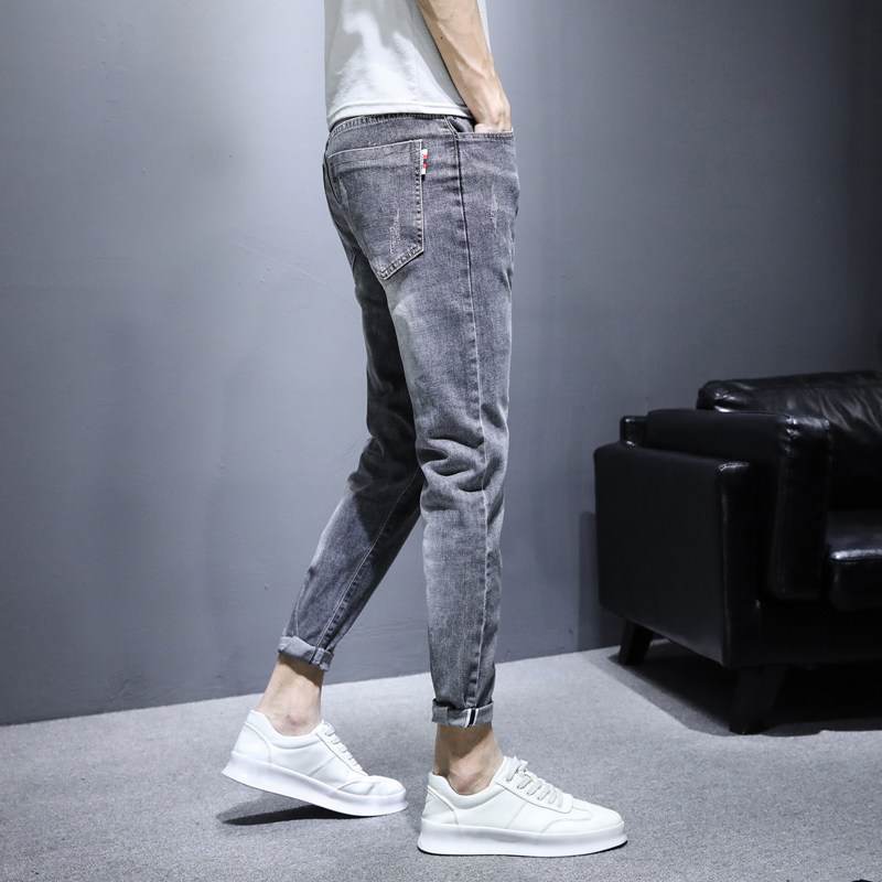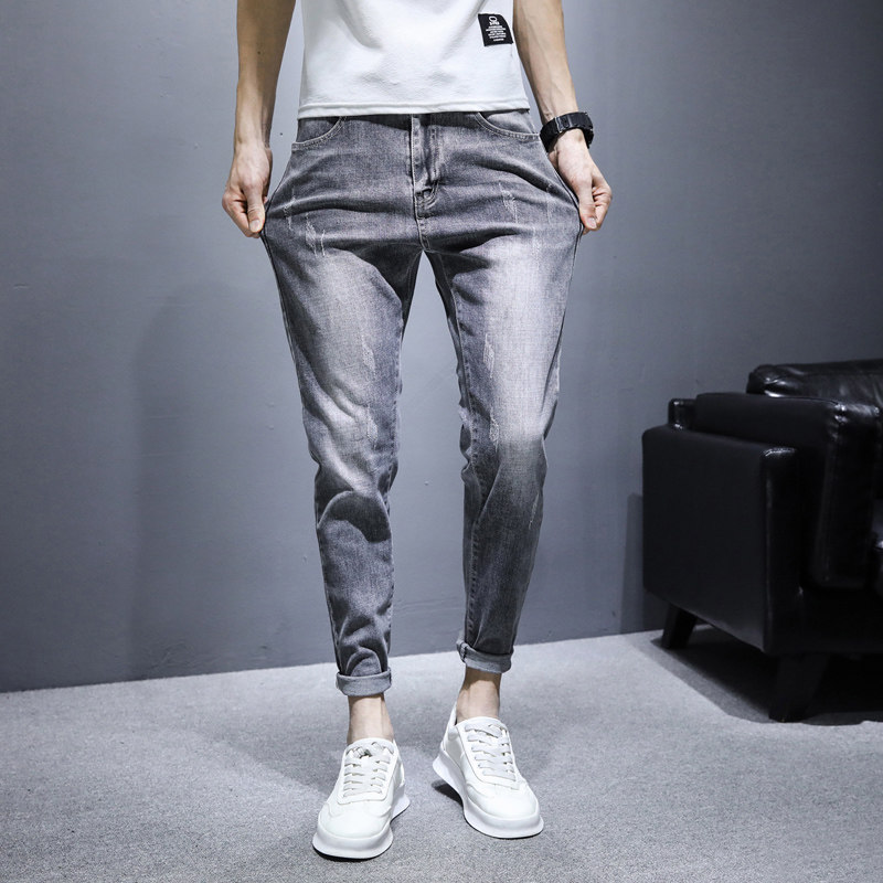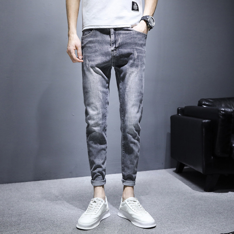 Jeans Men's Gray Summer New Slim Fit Small Foot Ninth Pants Tide Brand Thin Sections Versatile Casual Stretch Pants