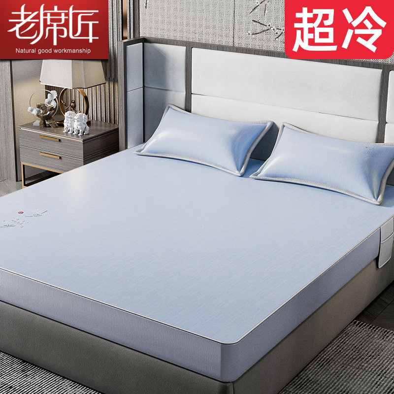 Old carpenter cool mat ice silk mat washable summer latex cool mat bed Bamboo Hat three sets Folding Air Conditioning Home