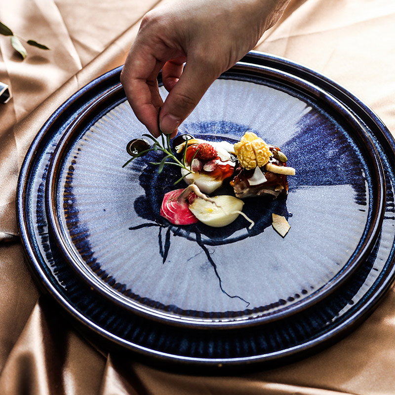 Creative Ceramics Day Style Big Round Pan Day Meal Dining Room Sushi Dish Hotel Italian Pasta Steak Tray Big Fish Dish Home