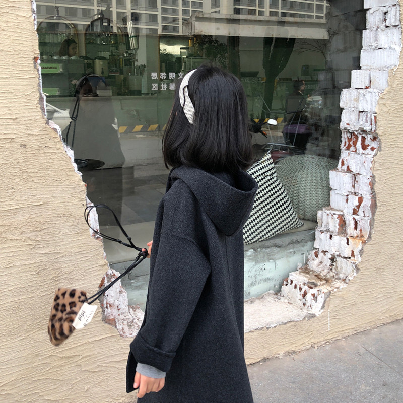 Girl ins wind double face cashmere big coat 2021 Korean version autumn winter clothing wool with hat cloak thickened, subcoat