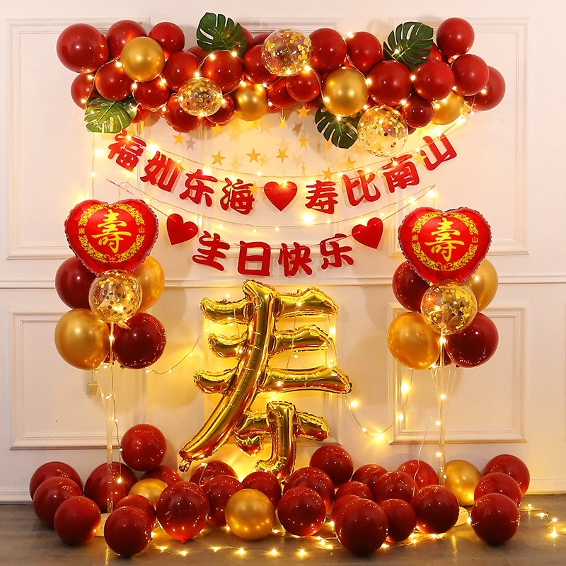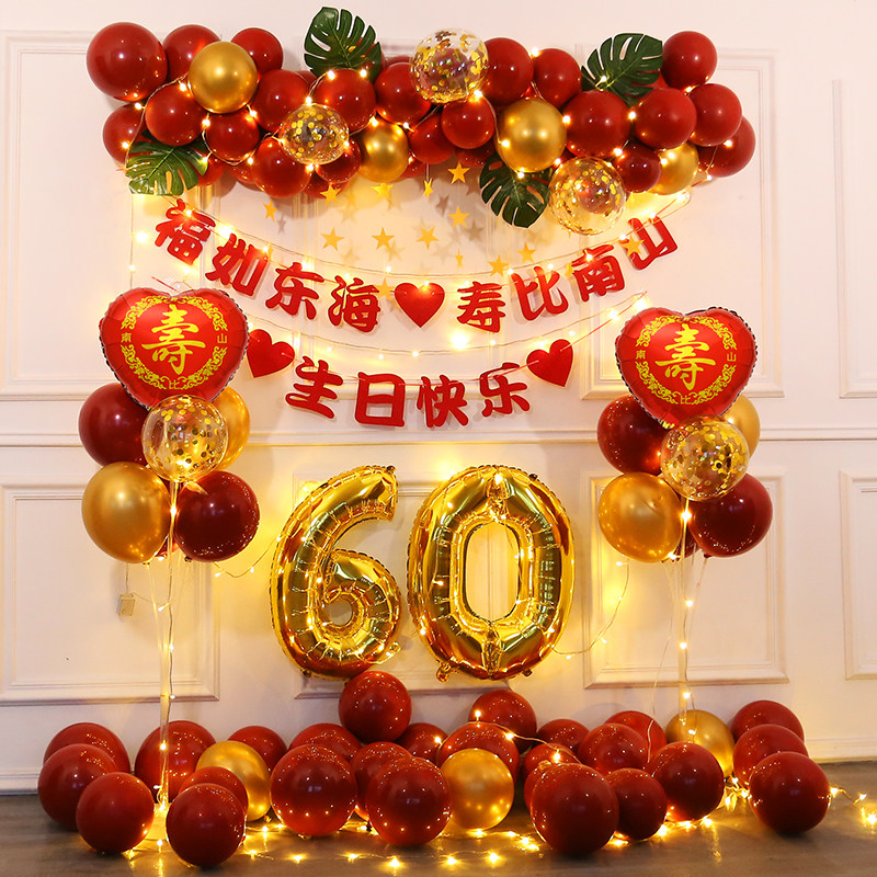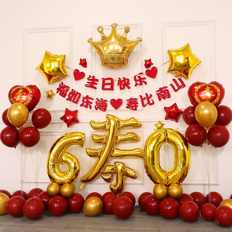 Old age 60 birthday arrangements Birthday Arrangement Balloon Background Wall Sushi Scene Decoration 70 Mom 80 Shou Star 60 Dou
