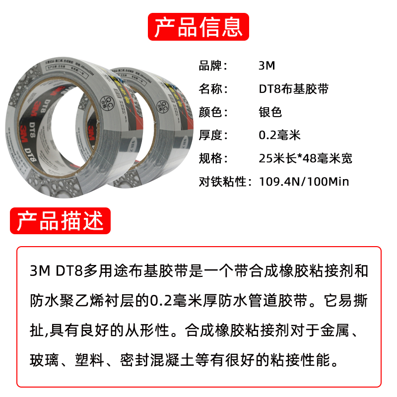 3M silver single-sided cloth base tape upgrade plus sticky waterproof leak-trapping DT8 ground masking repair tape