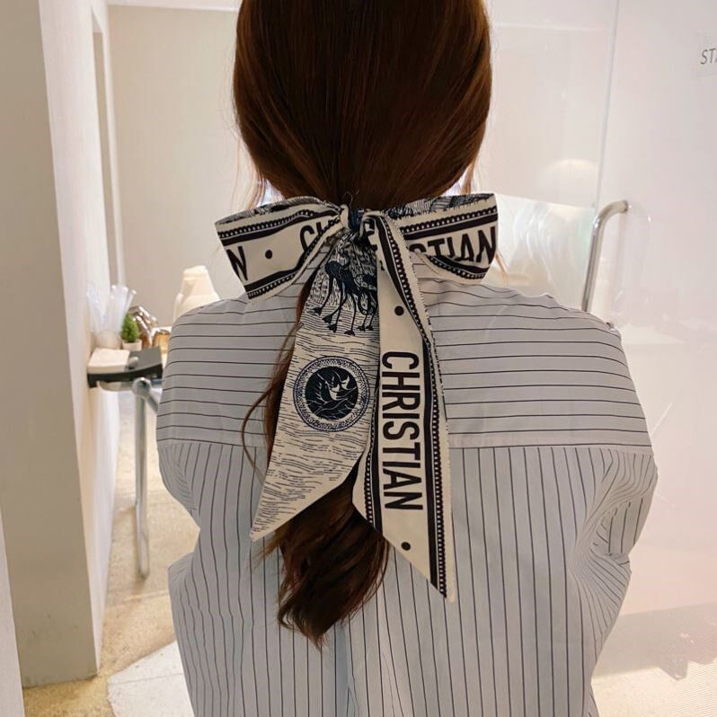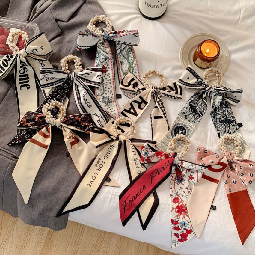 Love letter streamer letter print bow hair ring French retro pearl streamer hair ring silk scarf hair ring