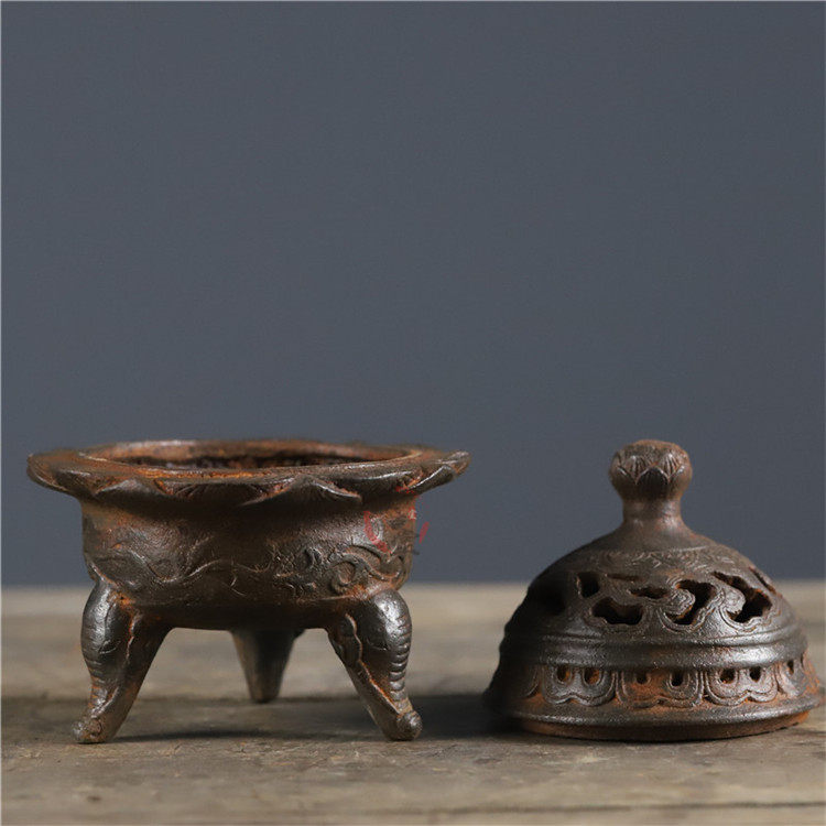Ancient playing iron articles old objects Lotus leg aroma oven retro nostalgic aroma furnace Chinese classical desk collection