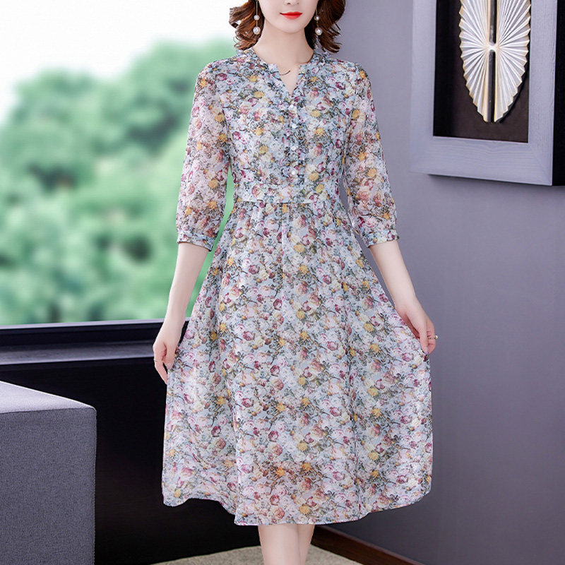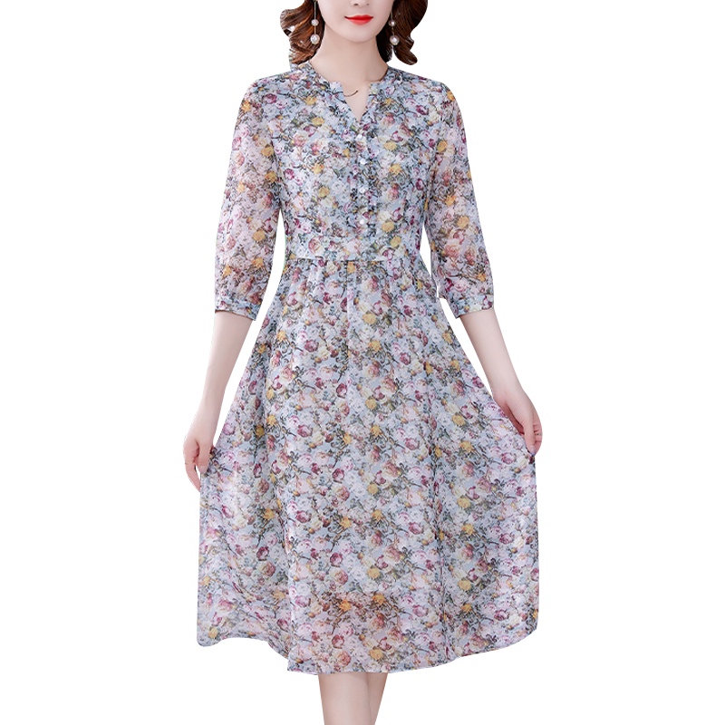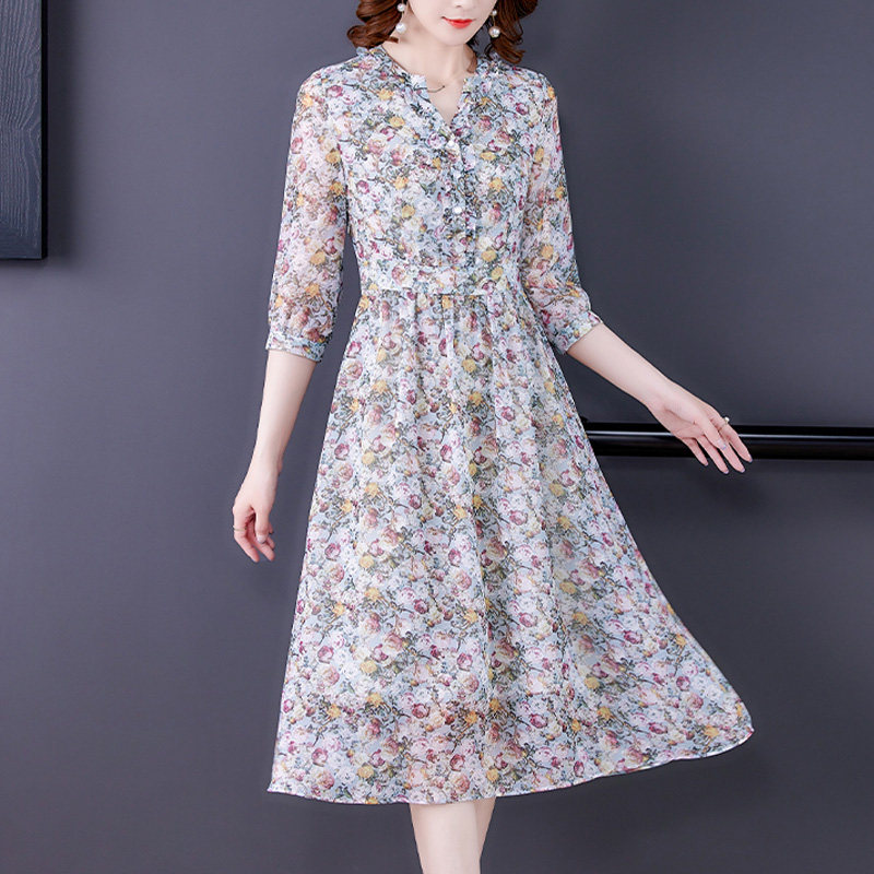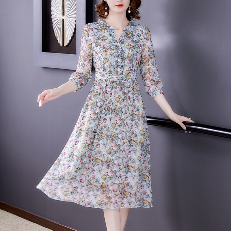 Your lady's summer this year's popular dresses, high-end Western style, age-reducing ladies, temperament, chiffon floral skirts