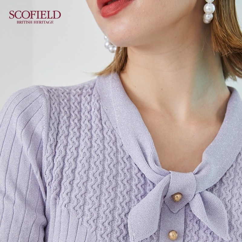 SCOFIELD Women in the Early Autumn Department Necktie Design Sense short sleeves Brief Pure Color Stitch Cardigan Shopping Mall same paragraph