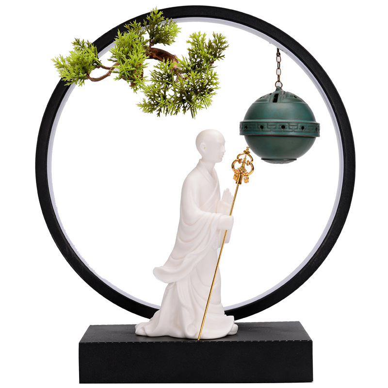 Ksitigarbha Bodhisattva Buddha statue with lamp circle Chinese Zen backflow incense decoration household ceramic sandalwood stove attracting wealth town house