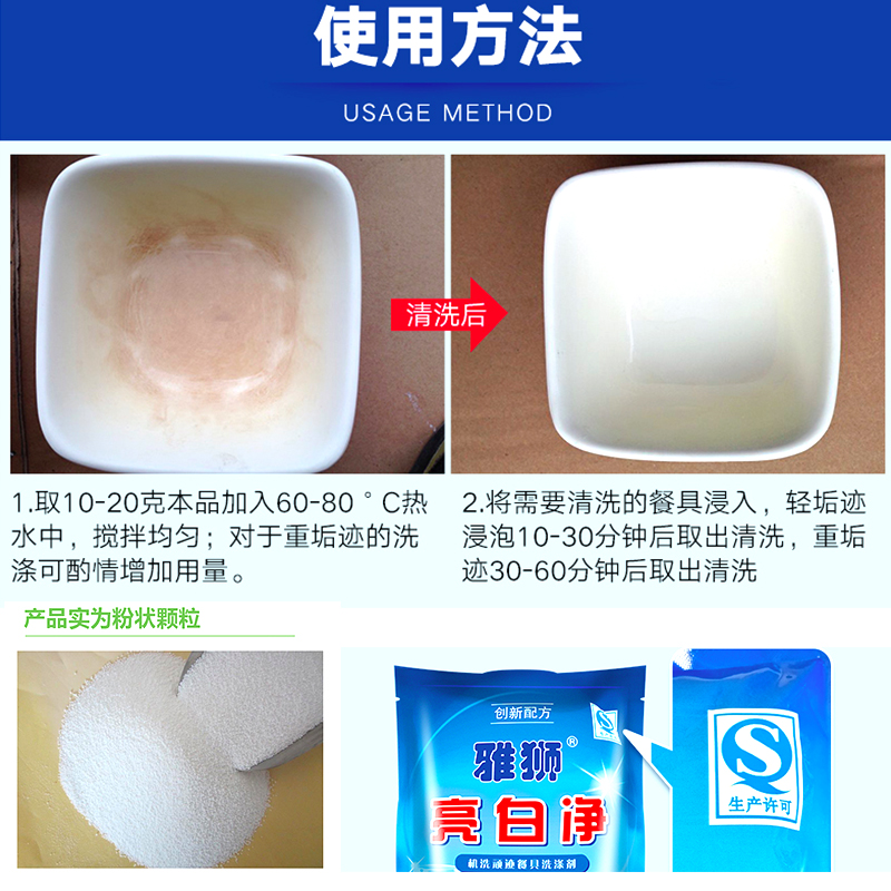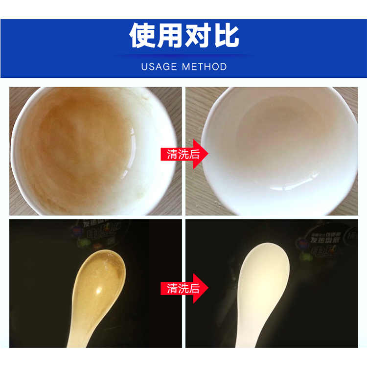 Melamine tableware special cleaning agent imitation porcelain ceramic bowls, dishes, spoons, stains, stains, yellow and black disinfection soaking powder