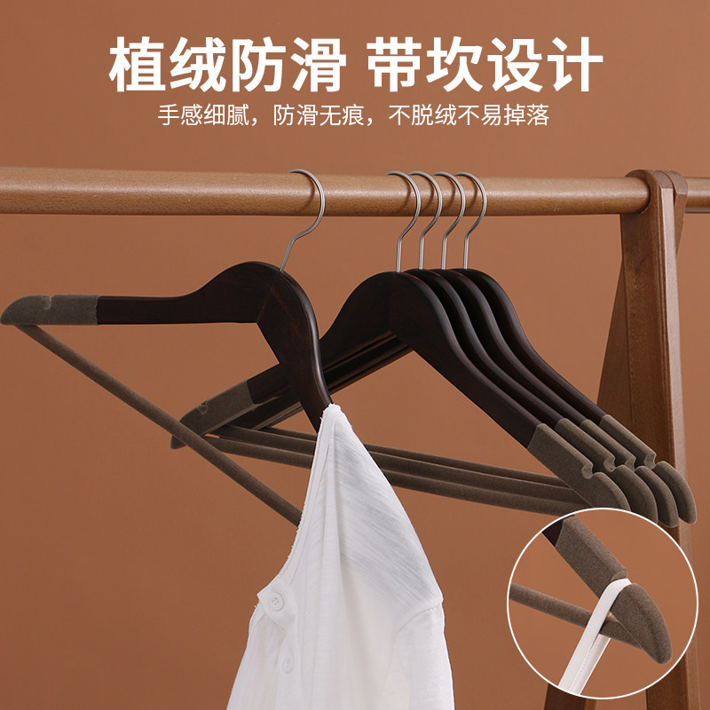 Flocking solid wood hanger non-slip non-trace household hanging clothes support clothes shelf Wooden wood wardrobe storage clothing store