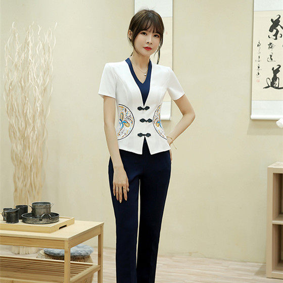2022 winter hotel club high-end foot bath pedicure technician clothes work clothes embroidery foot bath work clothes women