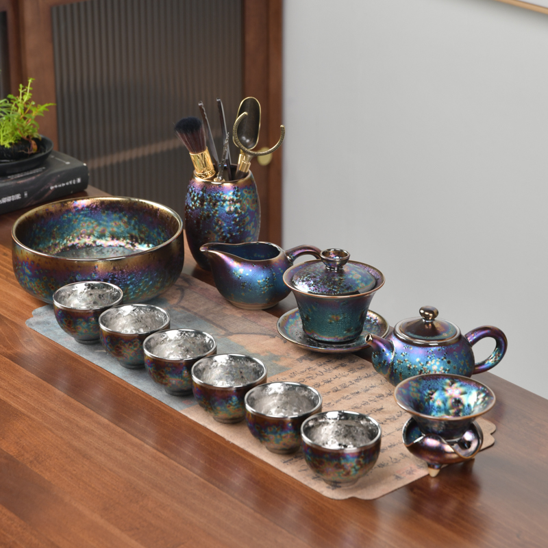Gilt Jianzhan tea cup complete set of ceramic kung fu tea set set household tea cup tea cup office reception guests