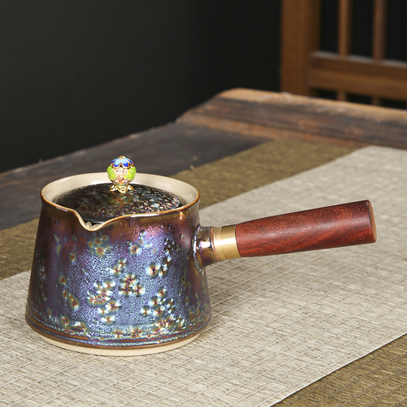 Colorful gilt wooden handle pot bowl and cup Tea ceremony tea washing colorful gilt wood handle pot stone grinding cup