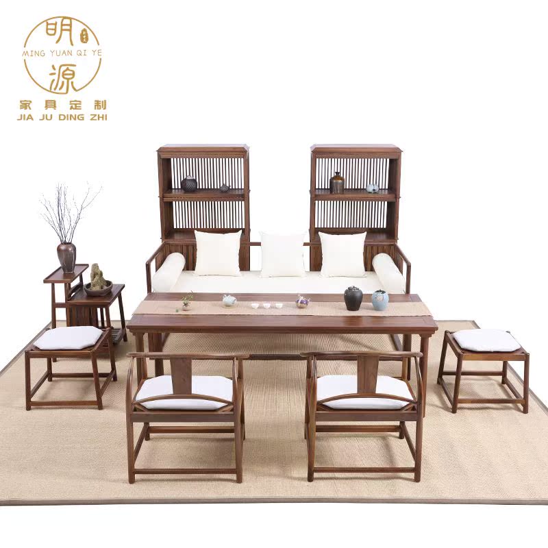 New Chinese style modern minimalist solid wood Arhat couch combination Zen Kung Fu coffee table homestay tea table circle chair furniture customization