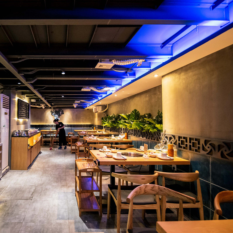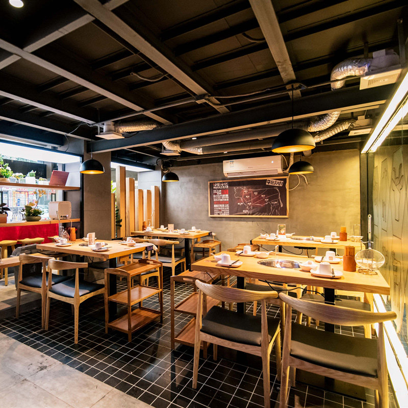 Customized restaurant Western restaurant hot pot barbecue sauerkraut fish snack bar fast food restaurant solid wood dining table and chair combination