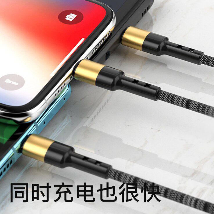 Data line three in one 5A fast charge Apple Android Typec flash new one - drag three generic mobile phone charging line
