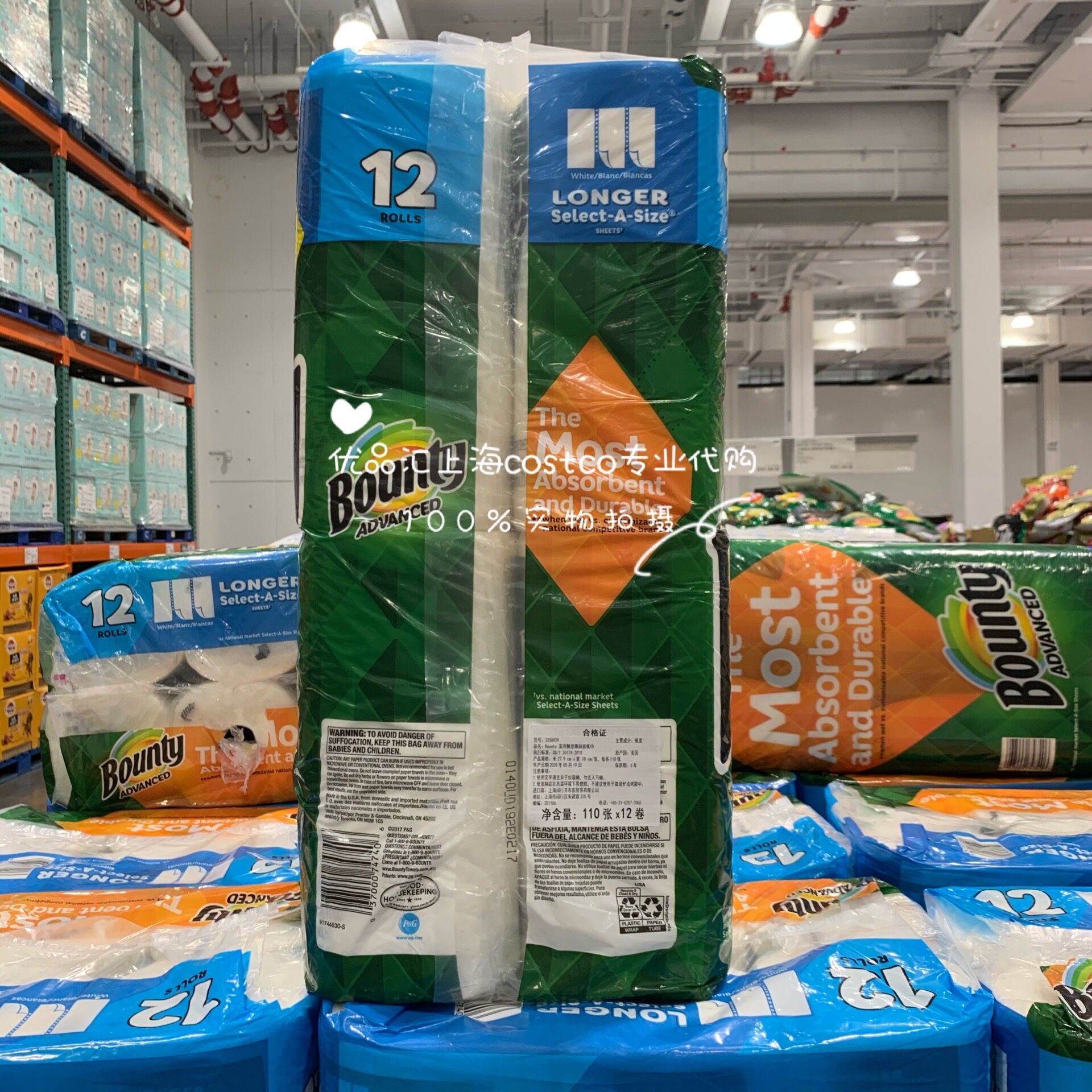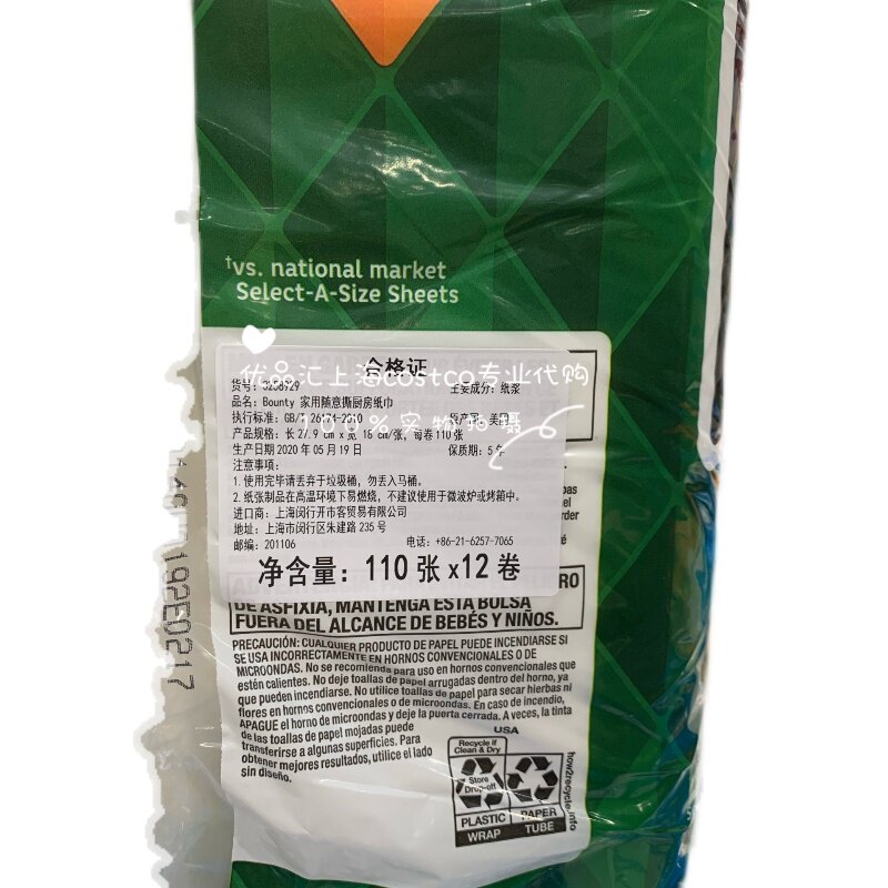 U.S. Bounty household tore kitchen paper towel oil absorbent paper cloth paper 12 rolls Shanghai costco