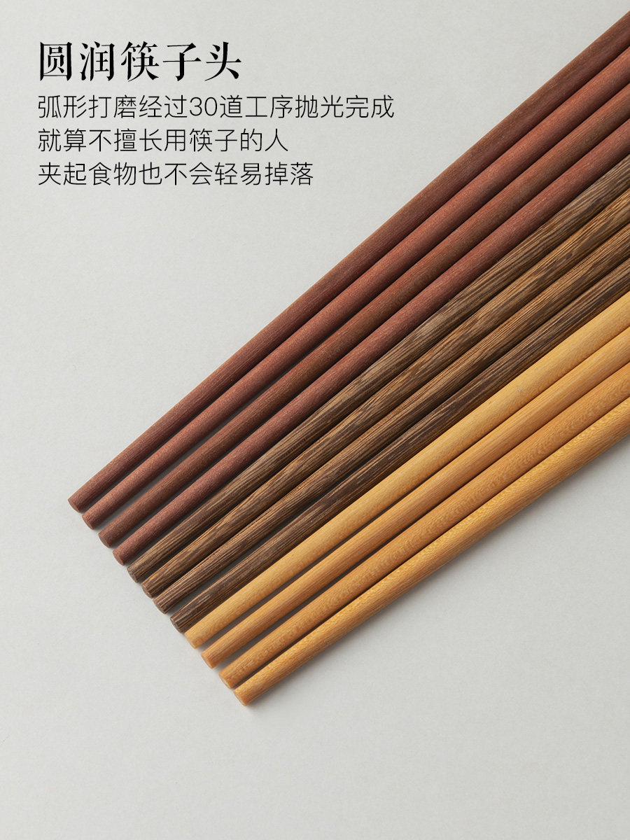 Jiluoya mahogany antibacterial log chopsticks anti-slip not easy to mold high temperature solid wood high-end household high-end fast son