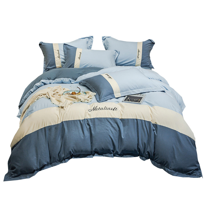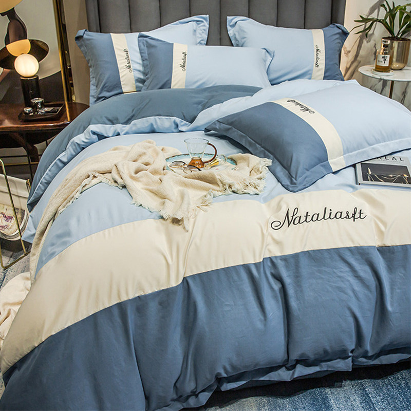 Nordic light luxury style nude sleeping skin-friendly washed cotton four-piece summer simple embroidered quilt cover sheet 1 8m bed cover