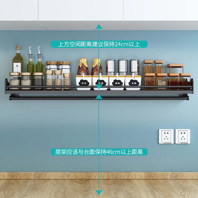 Kitchen rack wall-mounted stainless steel seasoning rack dish storage rack hanger pendant package
