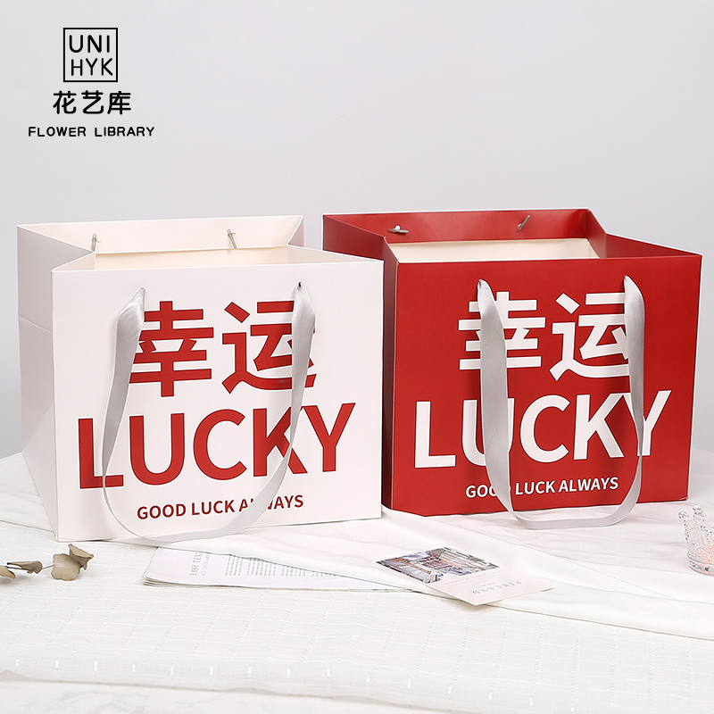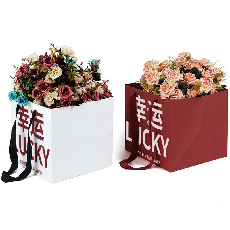 New large number of flowers Handbags square kraft Bags Bouquet Carry-on Box Bifacial Printed Gift Wrapping Bag