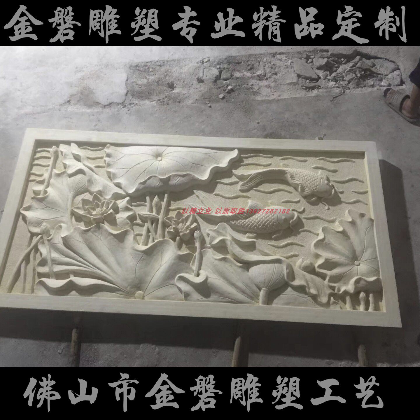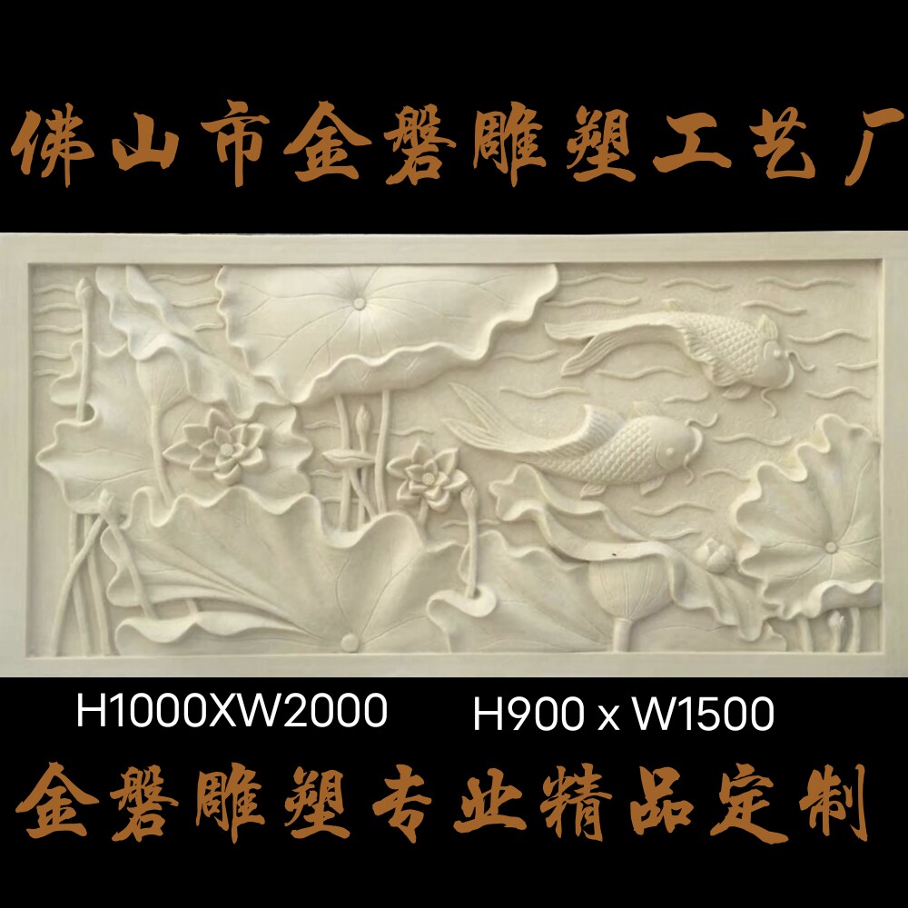 Natural artificial sandstone glass fiber imitation bronze cast bronze embossed artificial stone sculpted background wall lotus carp to figure