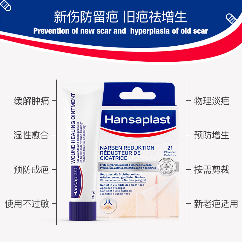 Germany Lufthansa Hansaplast scar lightening paste 21 pieces of scar repair cream to prevent scar hyperplasia and bulge