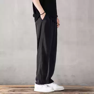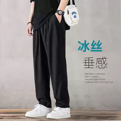 Summer straight pants ice silk thin hanging suit pants trend loose wide leg drop sense sports autumn casual pants
