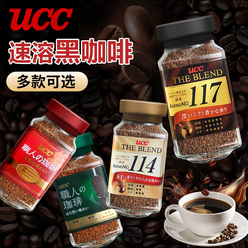 Japan imports ucc117 black coffee Yushi poetry freeze-dried coffee powder instant sugar-free American UCC117 bottled