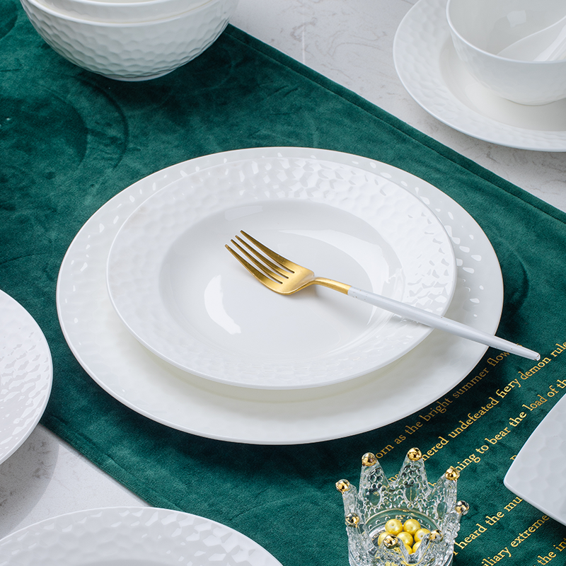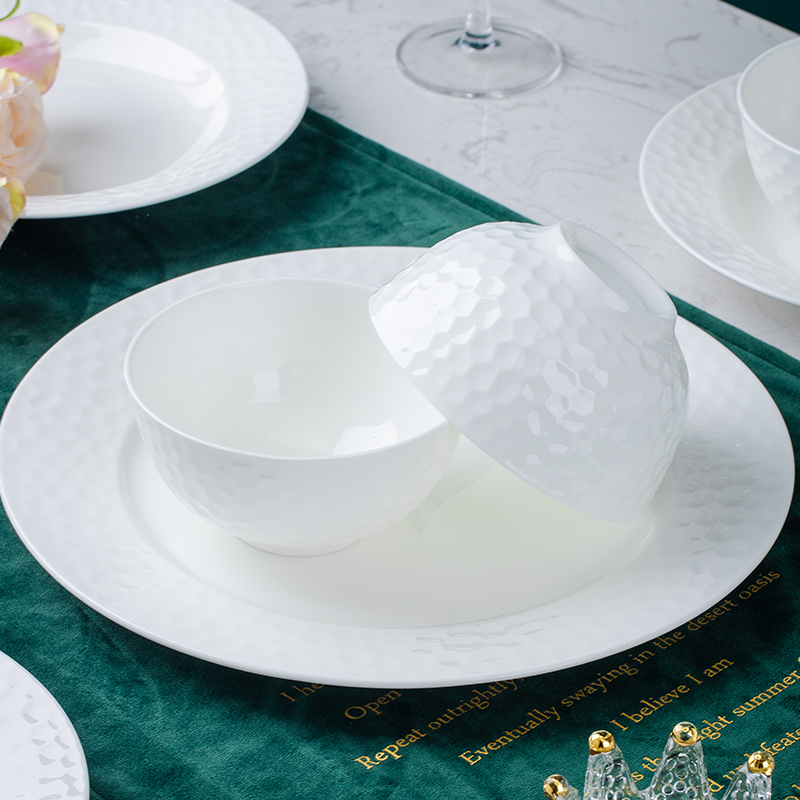 Jingdezhen Bowl Dish Suit Home Eu Type Glaze Lower Color Bone China Cutlery Tableware Light Lavish Simplicity About Pure White Bowl Dish Bowl and chopsticks Composition