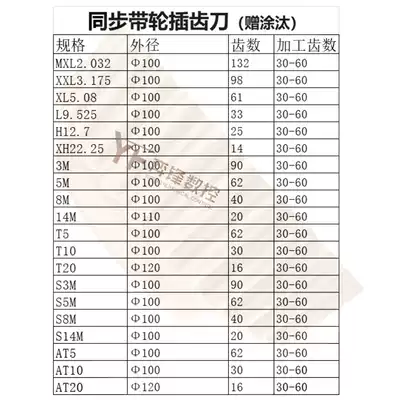 Synchronous belt wheel gear shaper cutters Phi 100-120 specifications 3M 5M AT5 14M 8M AT10AT20 gift coating