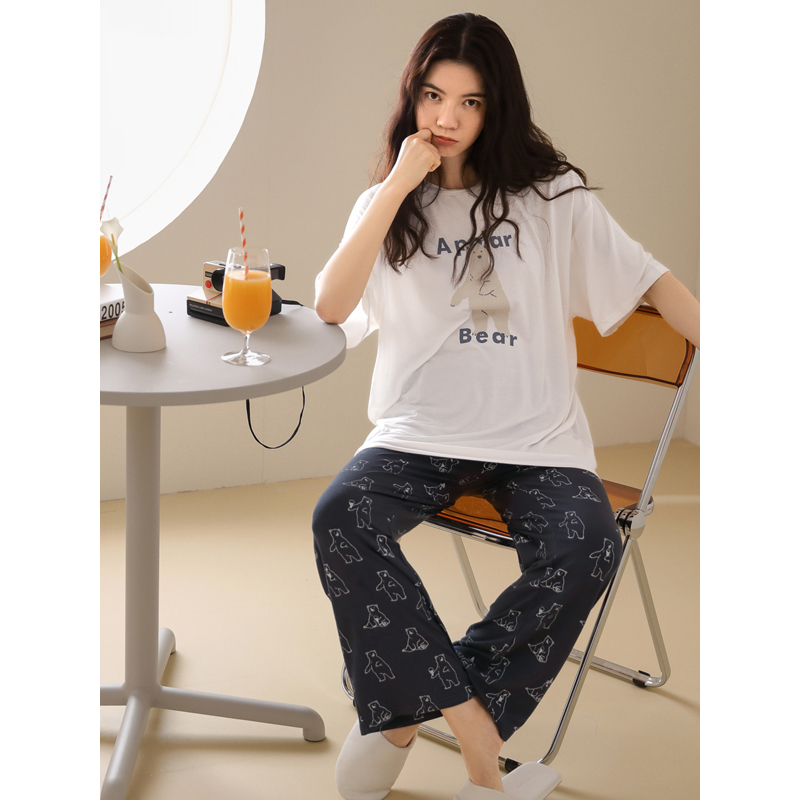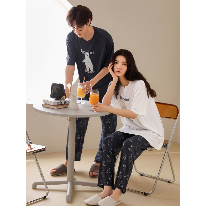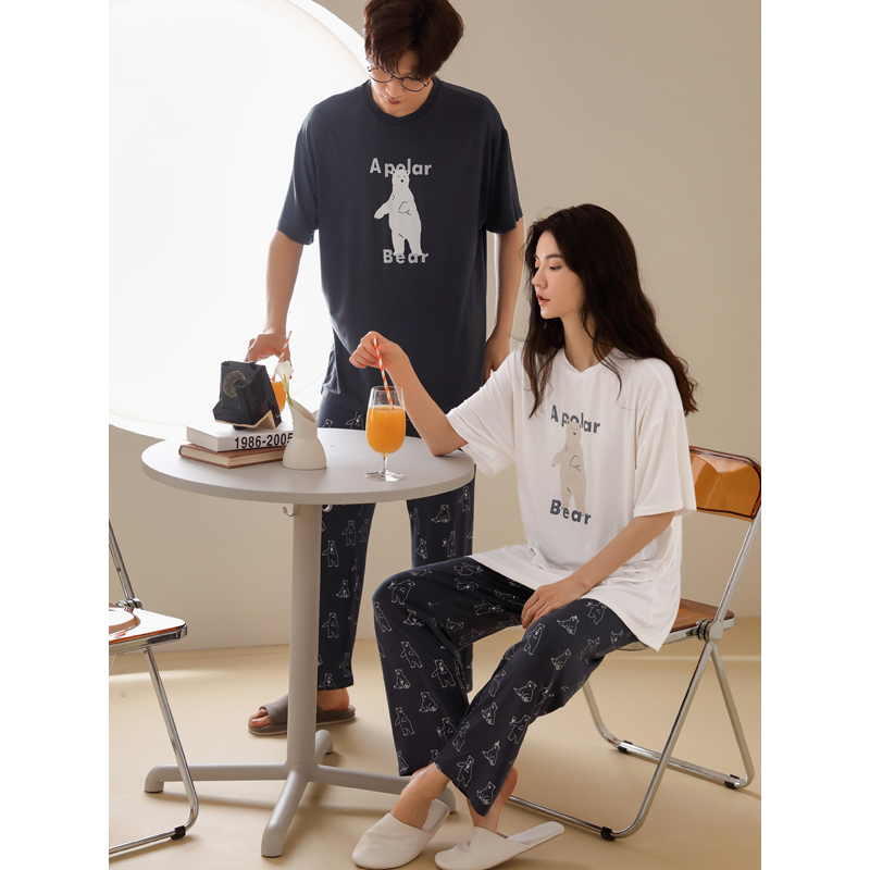 Couple pajamas women's summer thin cartoon cute short-sleeved trousers suit Men's summer casual short-sleeved home wear