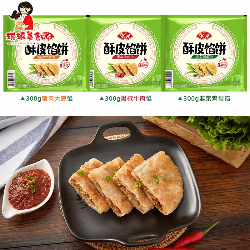 Anjing Crisp Pie 300g * 4 packs of pork shallot leeks Eggs Black Pepper Beef Onion Grab Pie Noodle Leather 12 Sheet Clothing