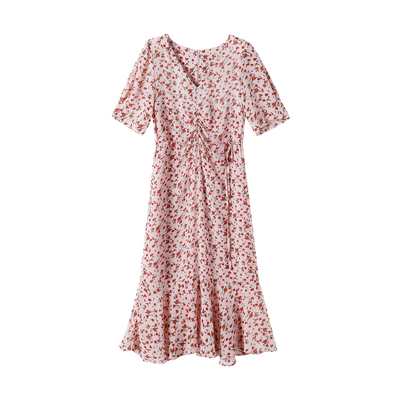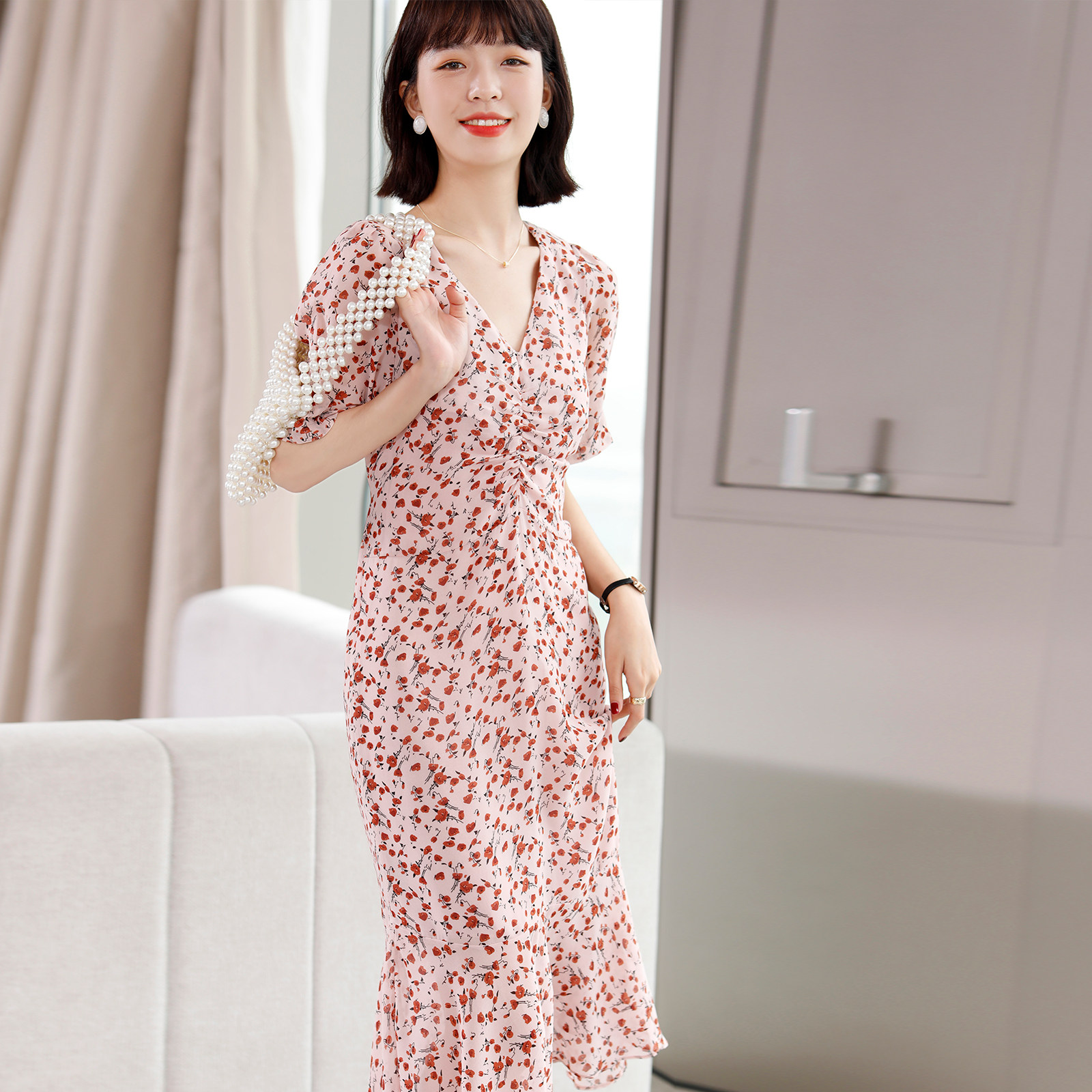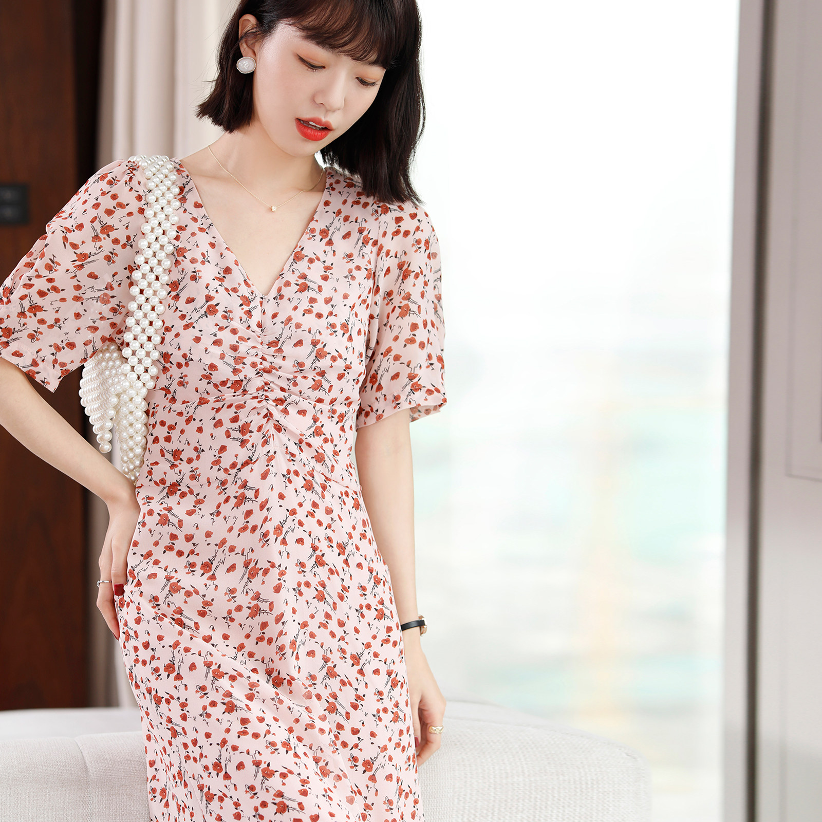 FENPERATE French style 2022 summer new temperament V collar cashew slim snowspun foreign dress Fancy Dress