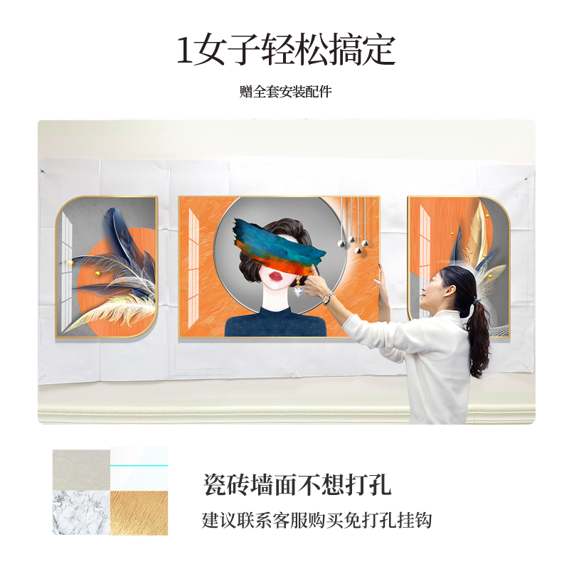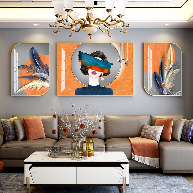 Modern Crystal Porcelain Living Room Decoration Painting Light Extravagant figures Sofa Background Wall Atmospheric Wall Paintings Triptych Nordic Hanging Paintings