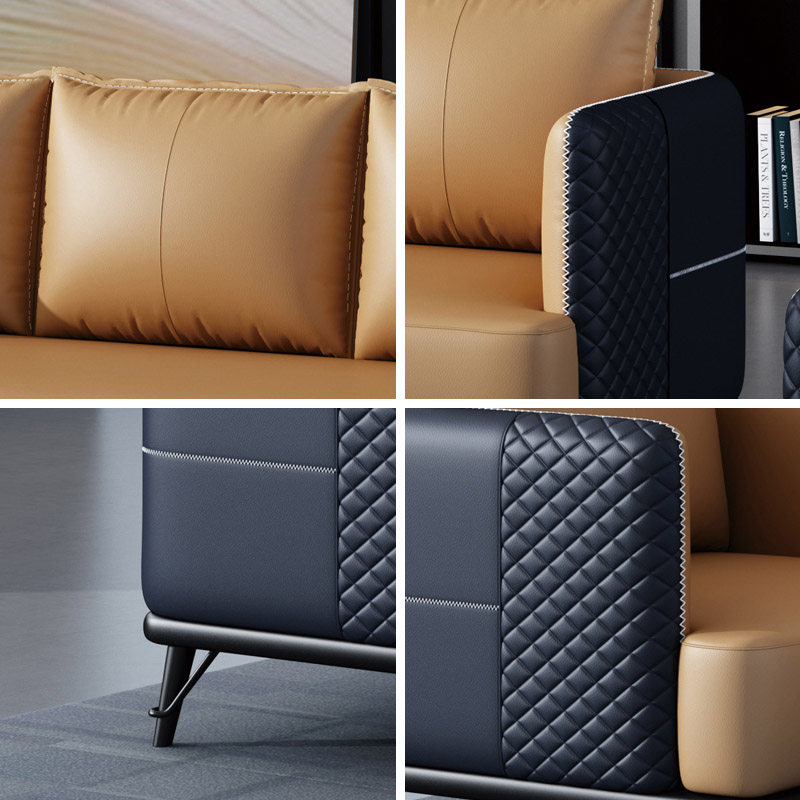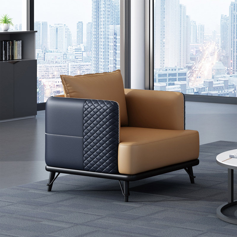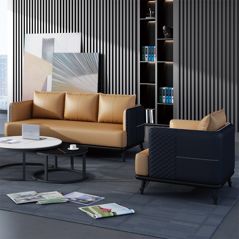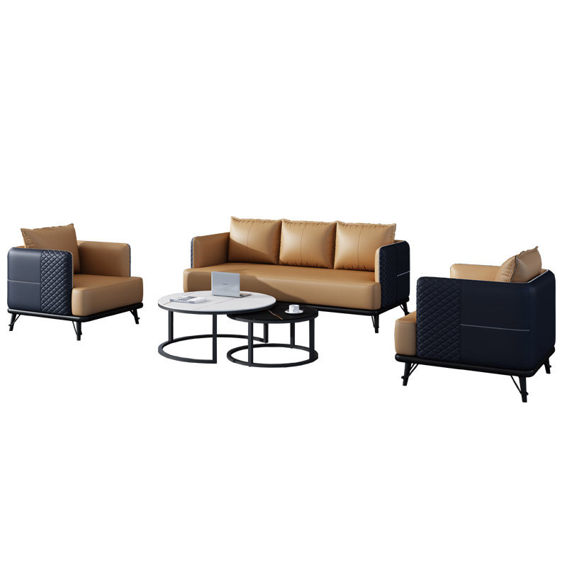 Light luxury and simple modern black leather office sofa business reception to negotiate rock round tea combination